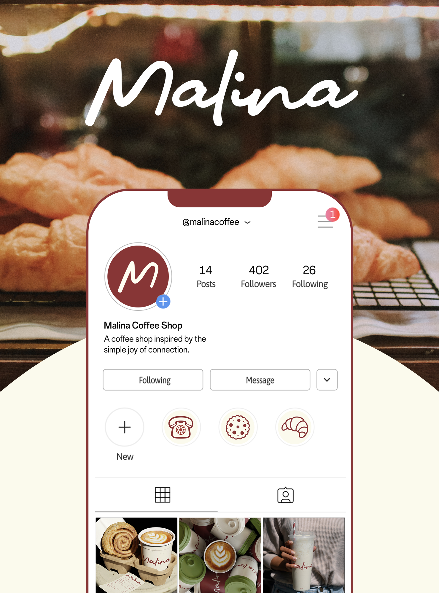 Malina is a coffee shop inspired by the bond between a mother and her daughter — both passionate about coffee and creating bonds. The founder named the shop after her daughter, Malina, turning the brand into a tribute to shared warmth, love, and connection.