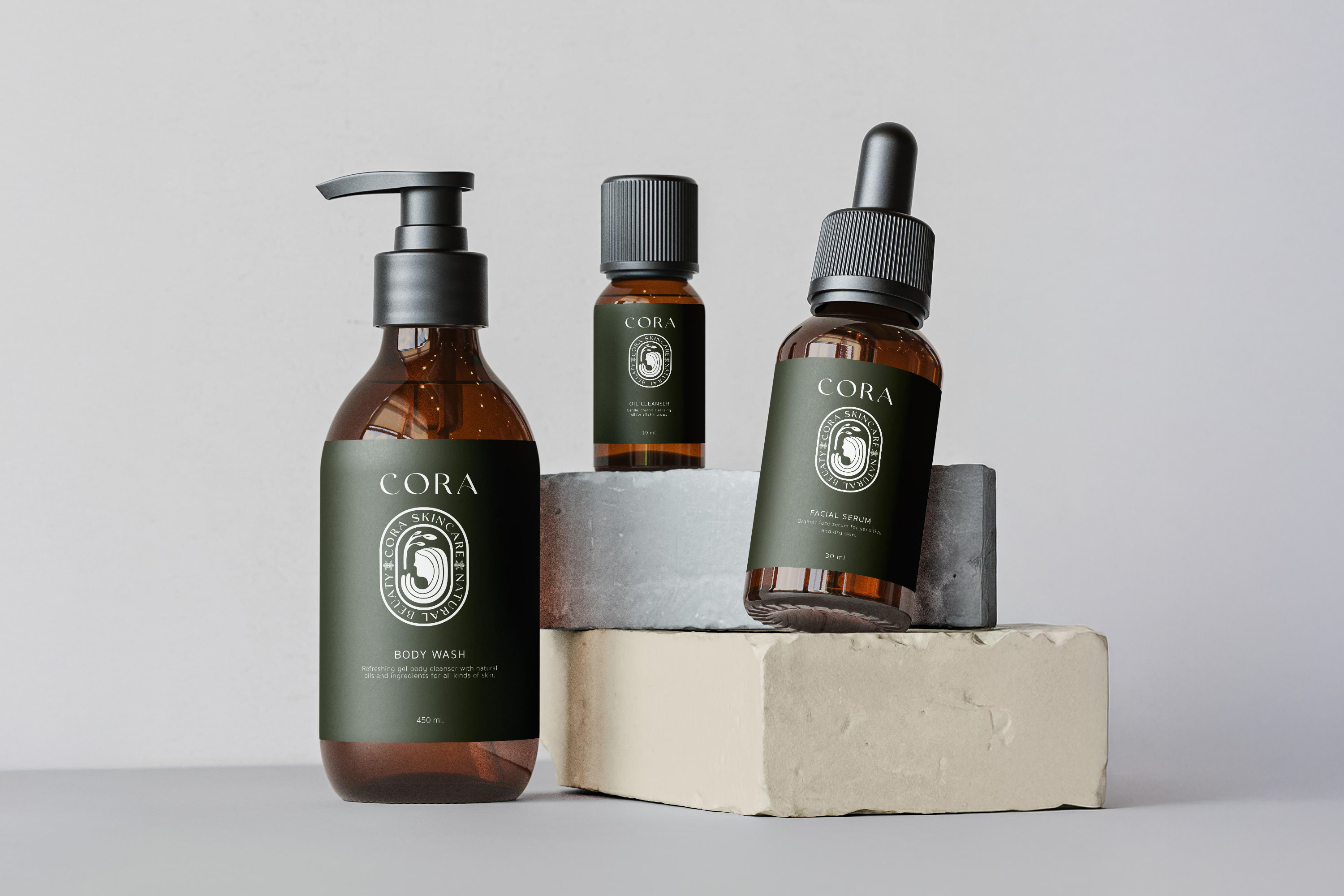 Cora concept is centered on organic skincare, and a grounded relationship with nature. Earthy tones, recyclable materials, and minimalistic yet elegant designs guided the visual direction, creating a balance between nature-inspired aesthetics and functionality.
